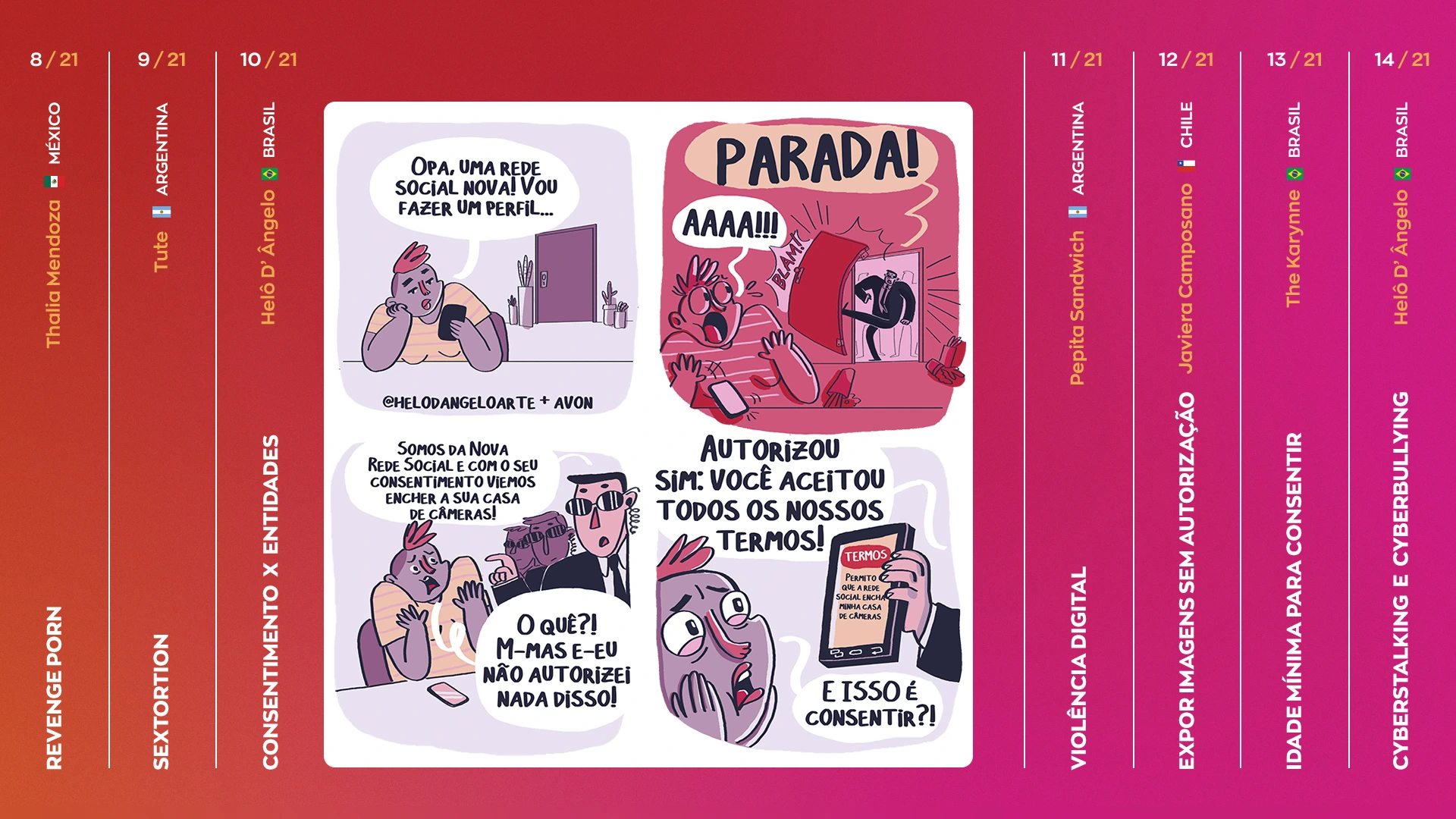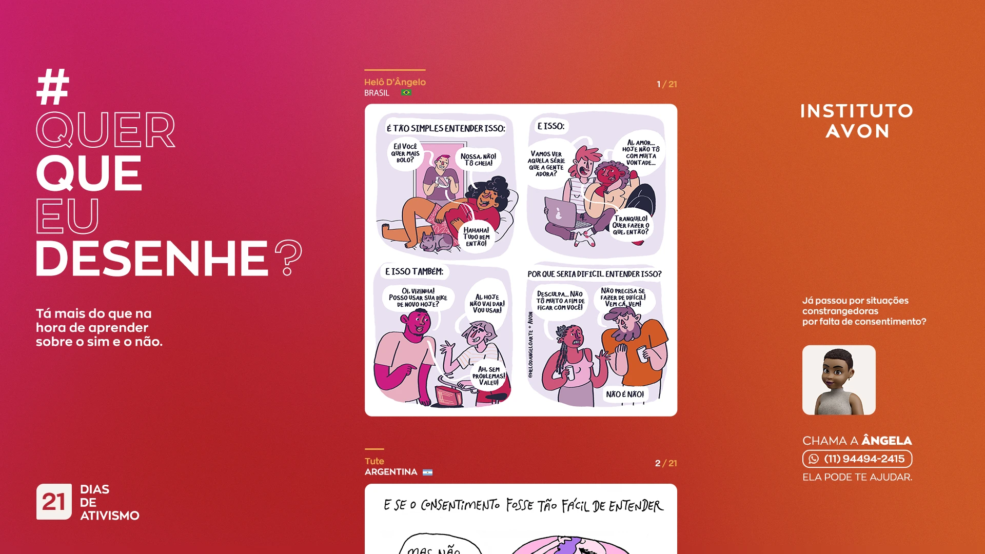 21 dias de campanha. 21 quadrinhos. 8 países. 7 artistas latinos. R$ 0 em mídia. 20,5 milhões em alcance no Instagram. 11,5 milhões em alcance no Facebook. 1 milhão de revendedoras Avon como distribuidoras das histórias neste almanaque que você pode baixar aqui.